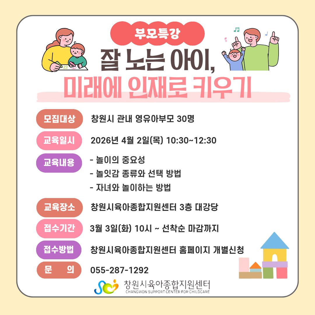 창원시육아종합지원센터에 현재 진행중인 교육을 확인해보세요!