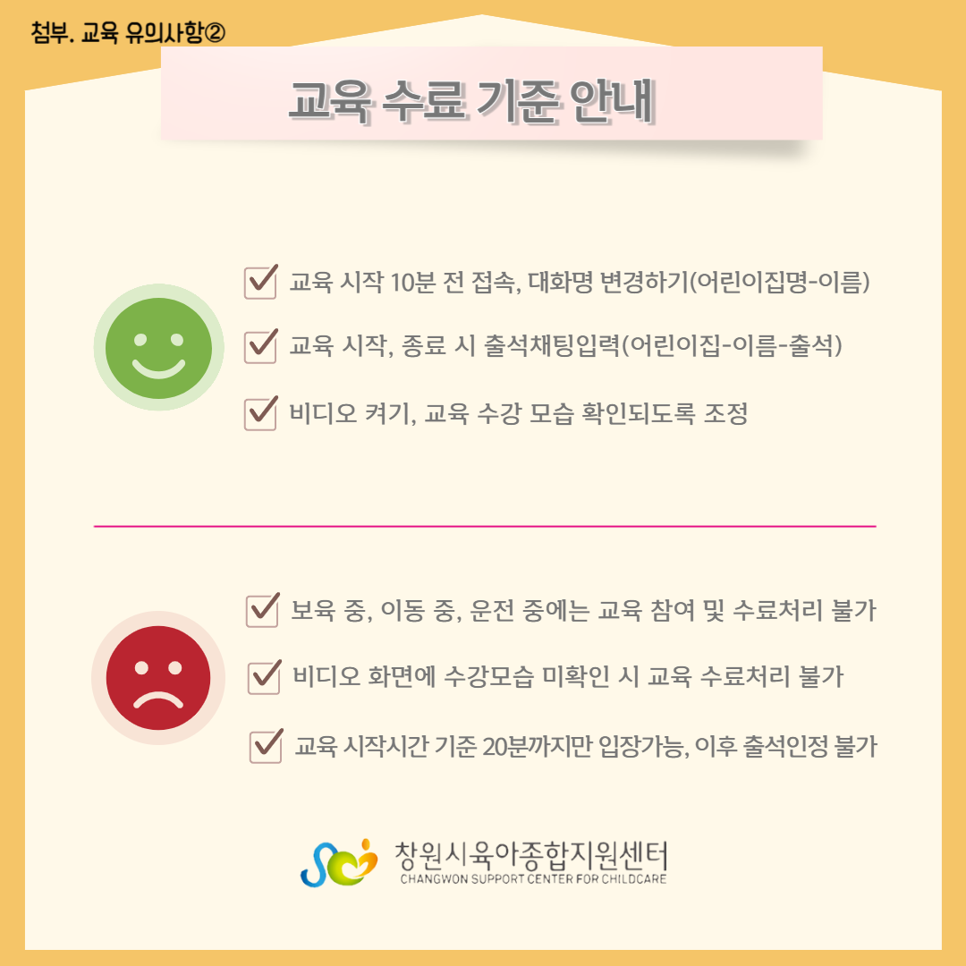 교육일시 및 장소를 반드시 확인하시어 교육 당일 시작 10분 전까지 교육 장소에 입실해주시기 바랍니다.