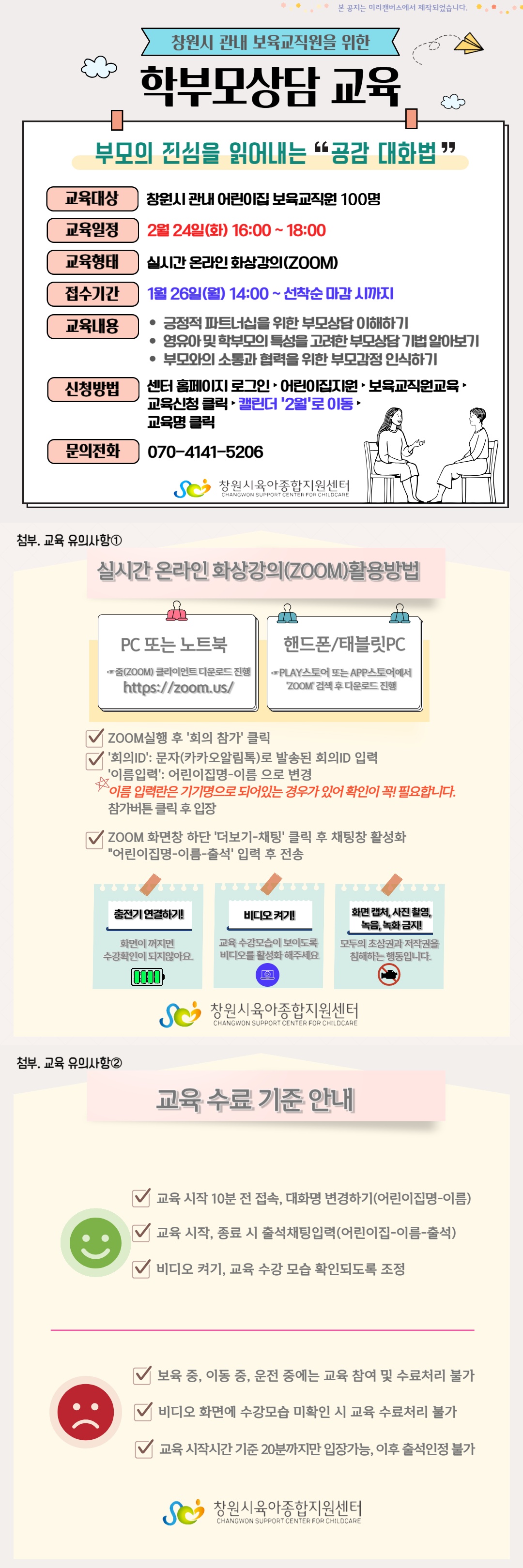 • 줌(zoom)사용 방법은 ‘보육자료실’ 내 ‘줌(zoom)이용 안내 매뉴얼’을 참조하시기 바랍니다.