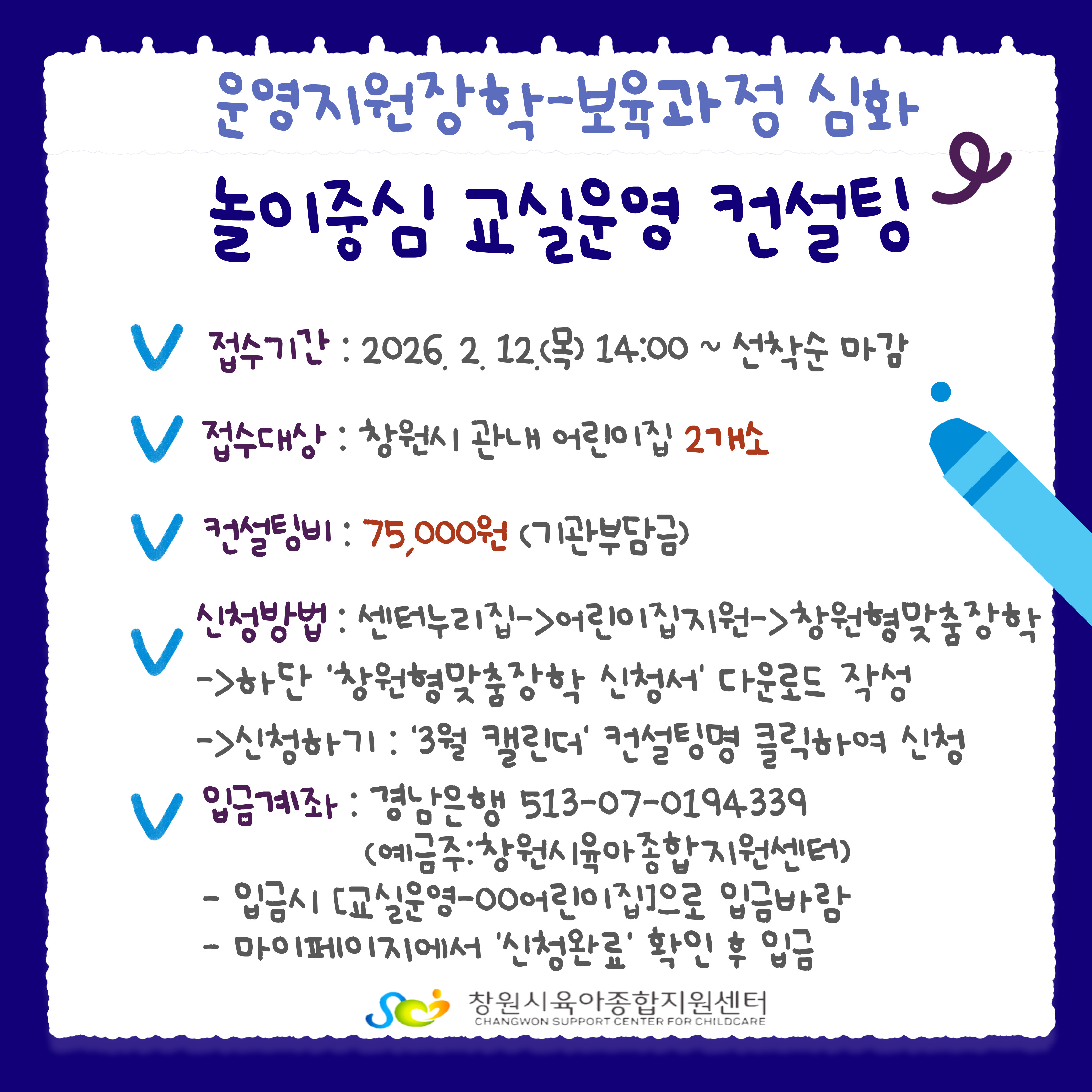 유료(75,000) 경남은행 513-07-0194339 (예금주:창원시육아종합지원센터)