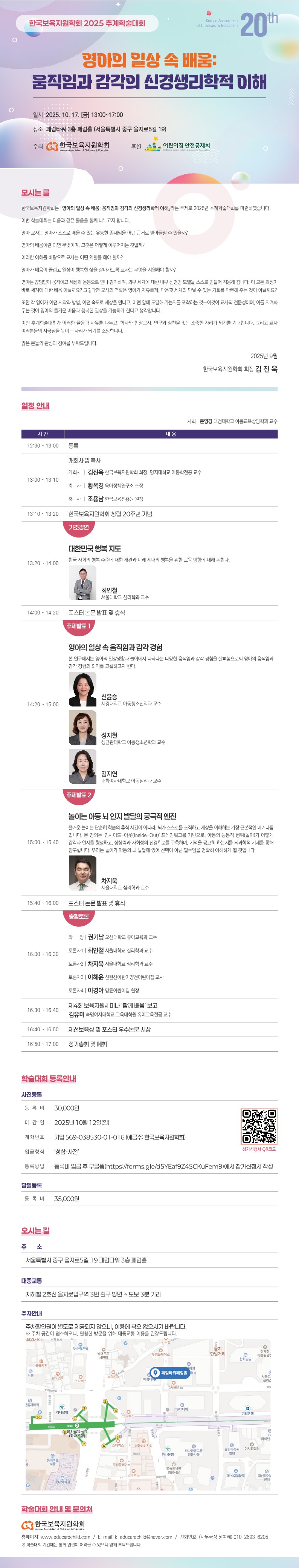 붙임 1. [한국보육지원학회] 2025 추계학술대회 웹초청장_영아의 일상 속 배움-움직임과 감각의 신.pdf