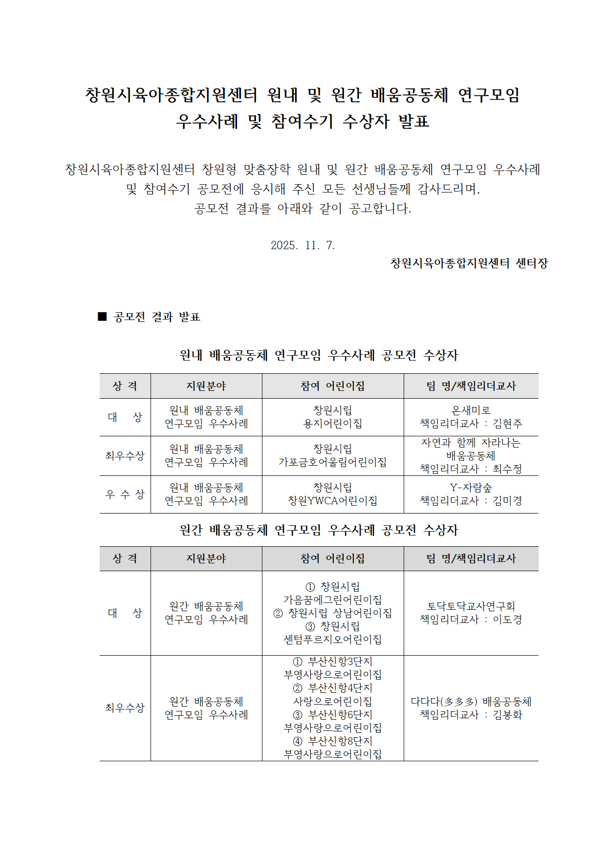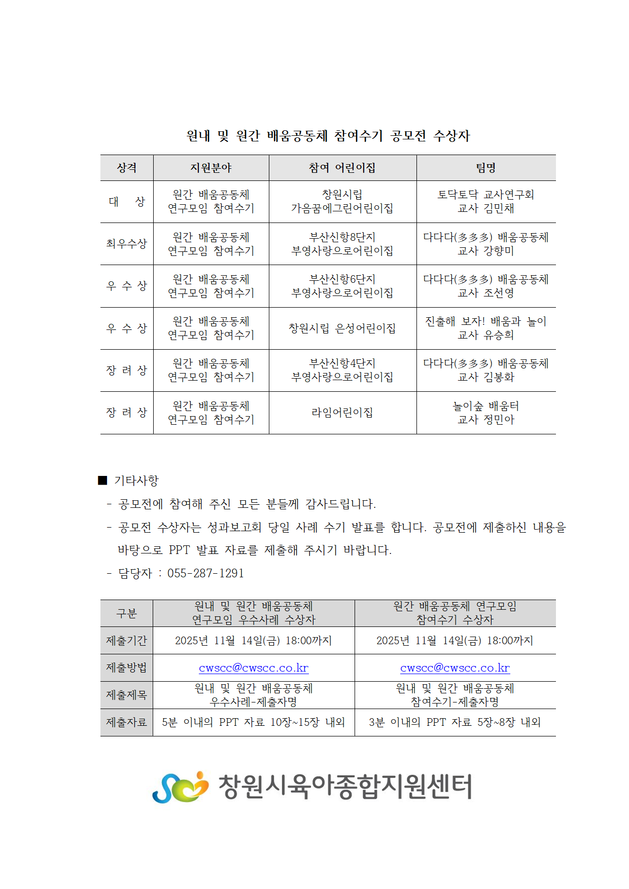 [안내] 원내 및 원간 배움공동체 연구모임 우수사례 및 참여수기 공모 수상자 발표