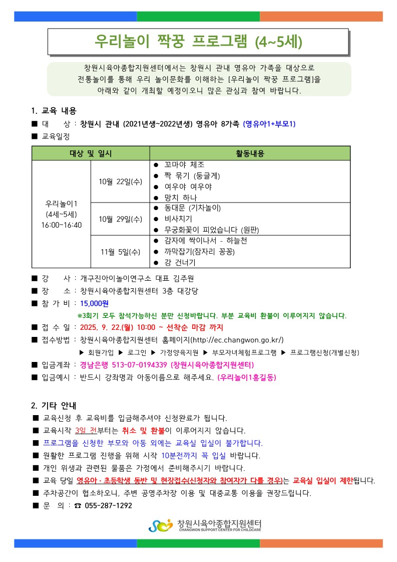 우리놀이 짝꿍1 (4~5세) 교육일시 확인필수!