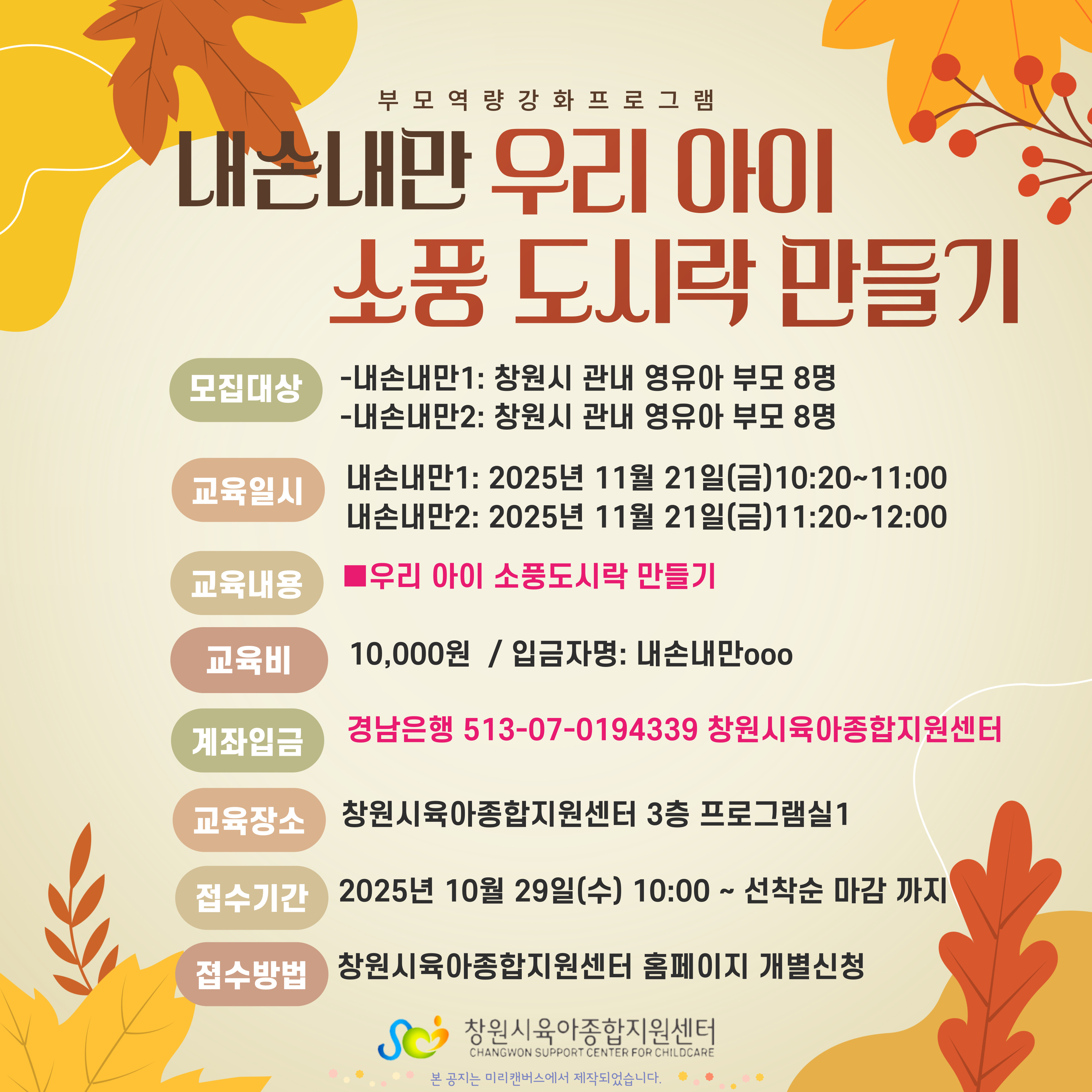 교육 당일 영유아 · 초등학생 동반은 불가합니다. (부모-자녀프로그램은 제외)