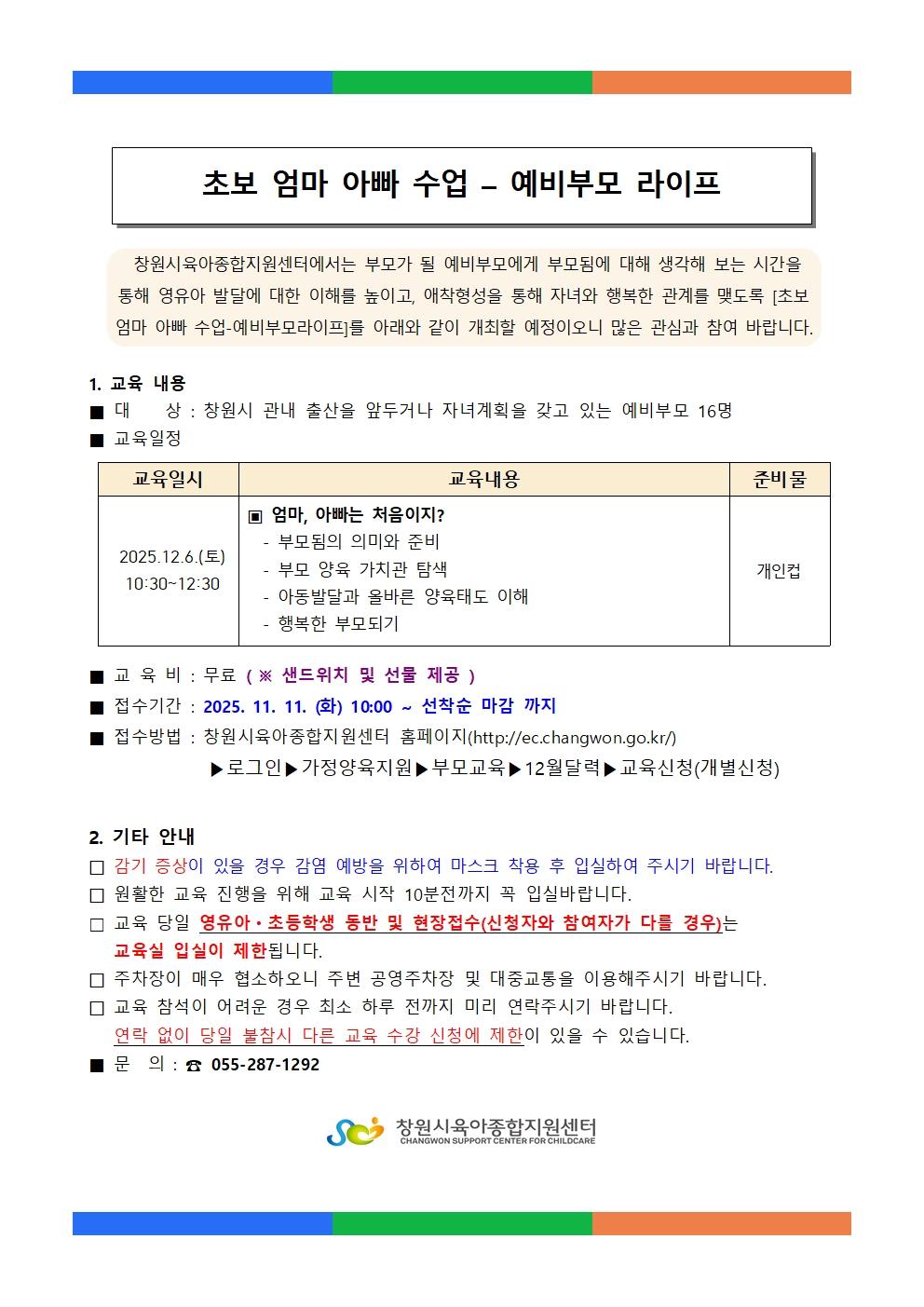 교육 당일 영유아 · 초등학생 동반은 불가합니다. (부모-자녀프로그램은 제외)