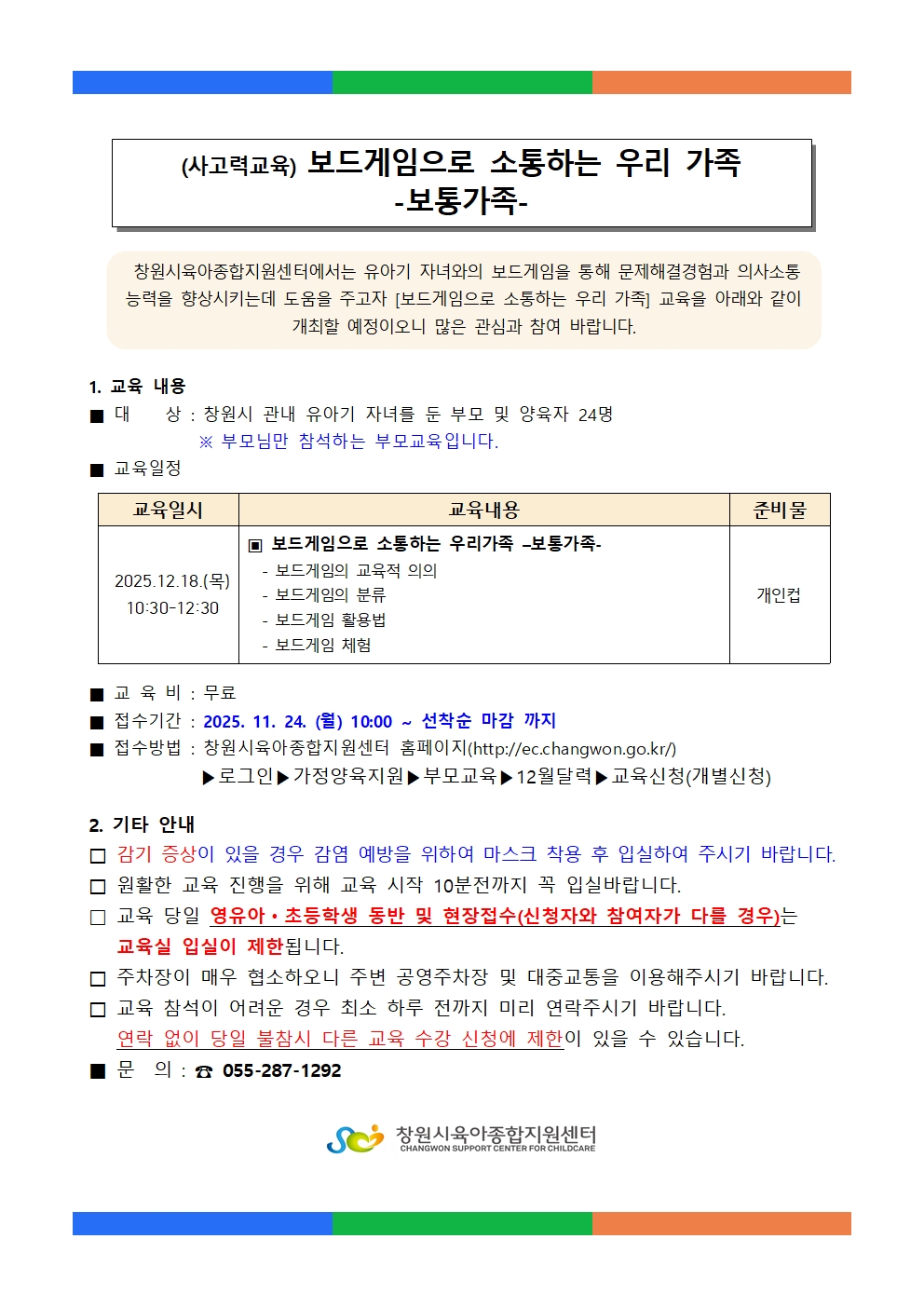 교육 당일 영유아 · 초등학생 동반은 불가합니다. (부모-자녀프로그램은 제외)